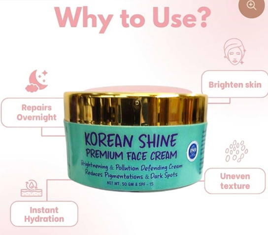 Kenega Korean Shine Face Cream is a skincare product designed to enhance your skin's radiance and hydration. Formulated with natural extracts, this cream aims to provide a luminous glow and improve overall skin texture.
